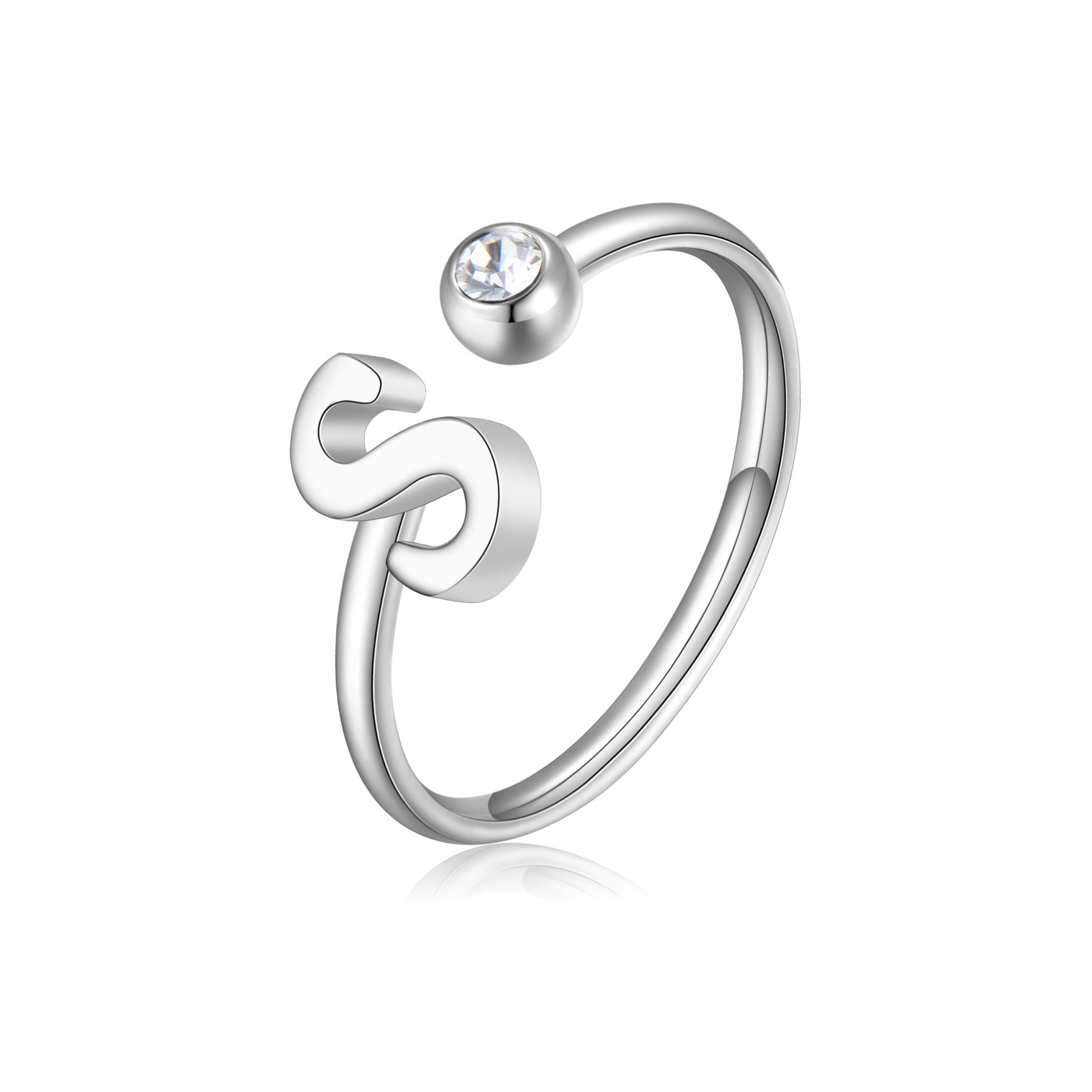 Anello in acciaio 316L a forma di lettera S e cristallo.