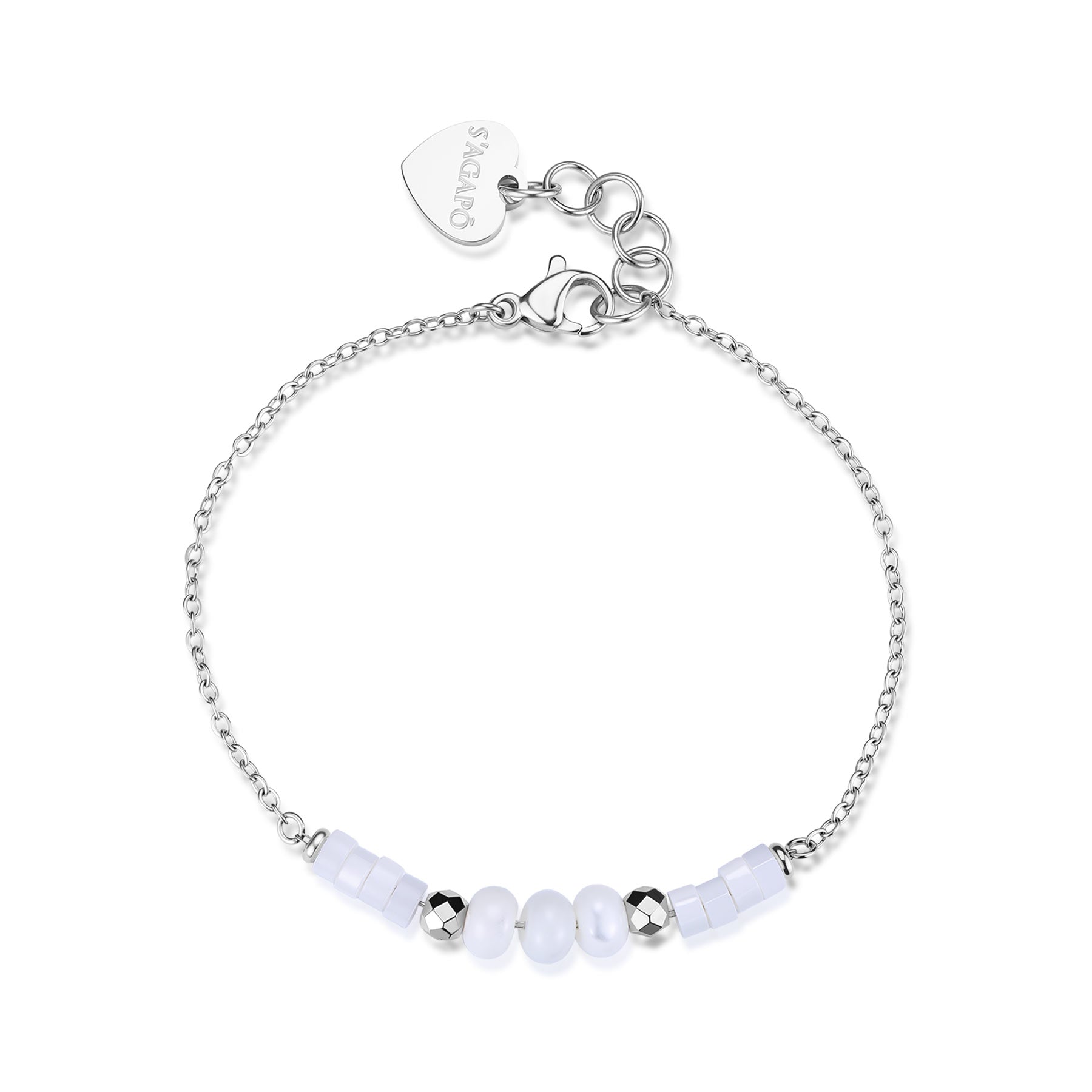 Bracciale in acciaio 316L e pietre in madreperla sintetiche.