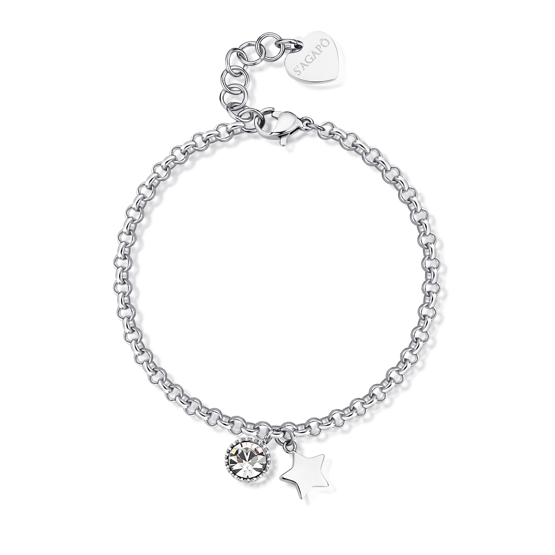 Bracciale catena forzatina in acciaio 316L con pendente a forma di stella e cristallo.
