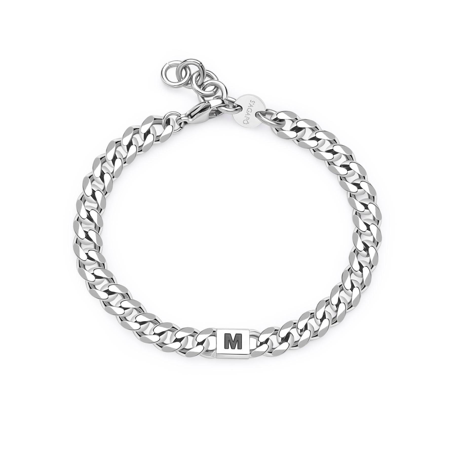Bracciale in acciaio 316L con centrale con lettera M e smalto nero.