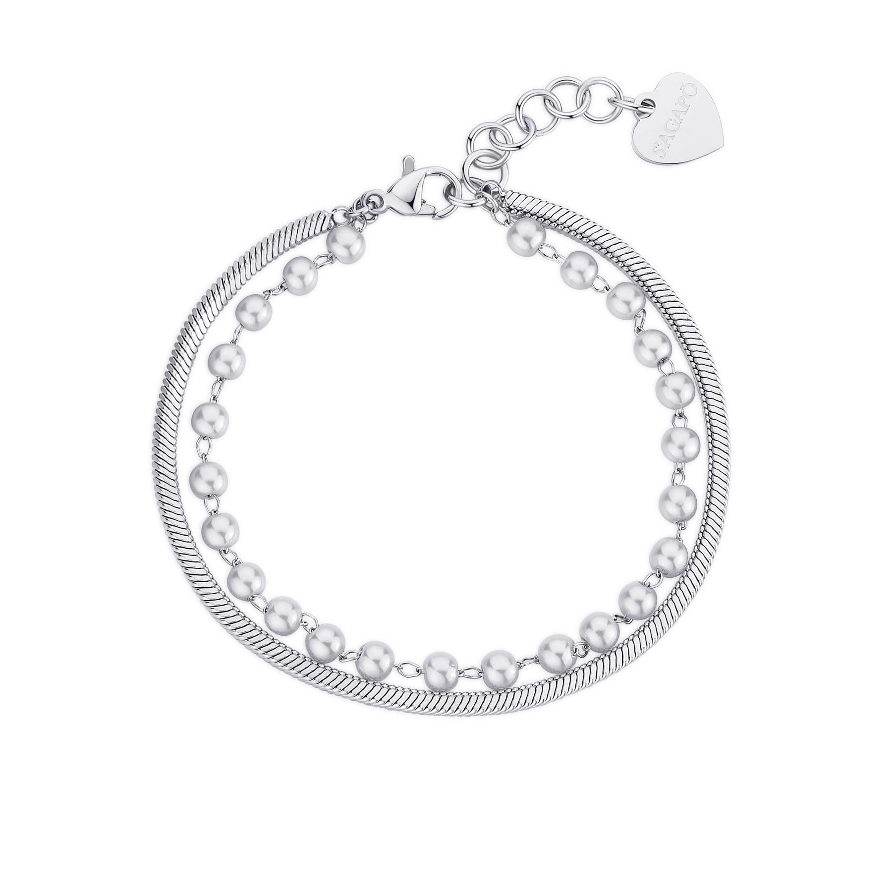 Bracciale doppio filo in acciaio 316L e perle di conchiglia.