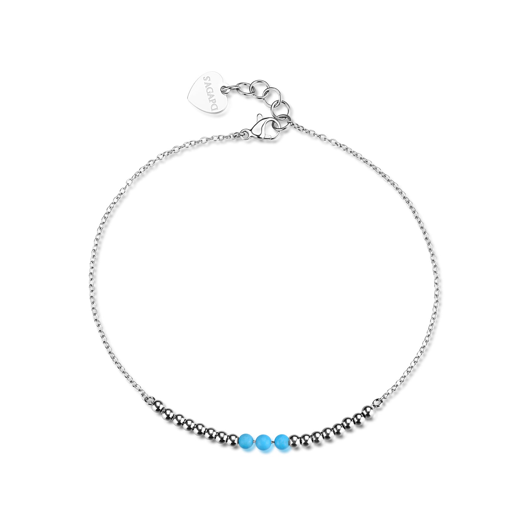 Cavigliera in acciaio 316L con sfere in acciaio e sfere centrali in turchese ricostruito.