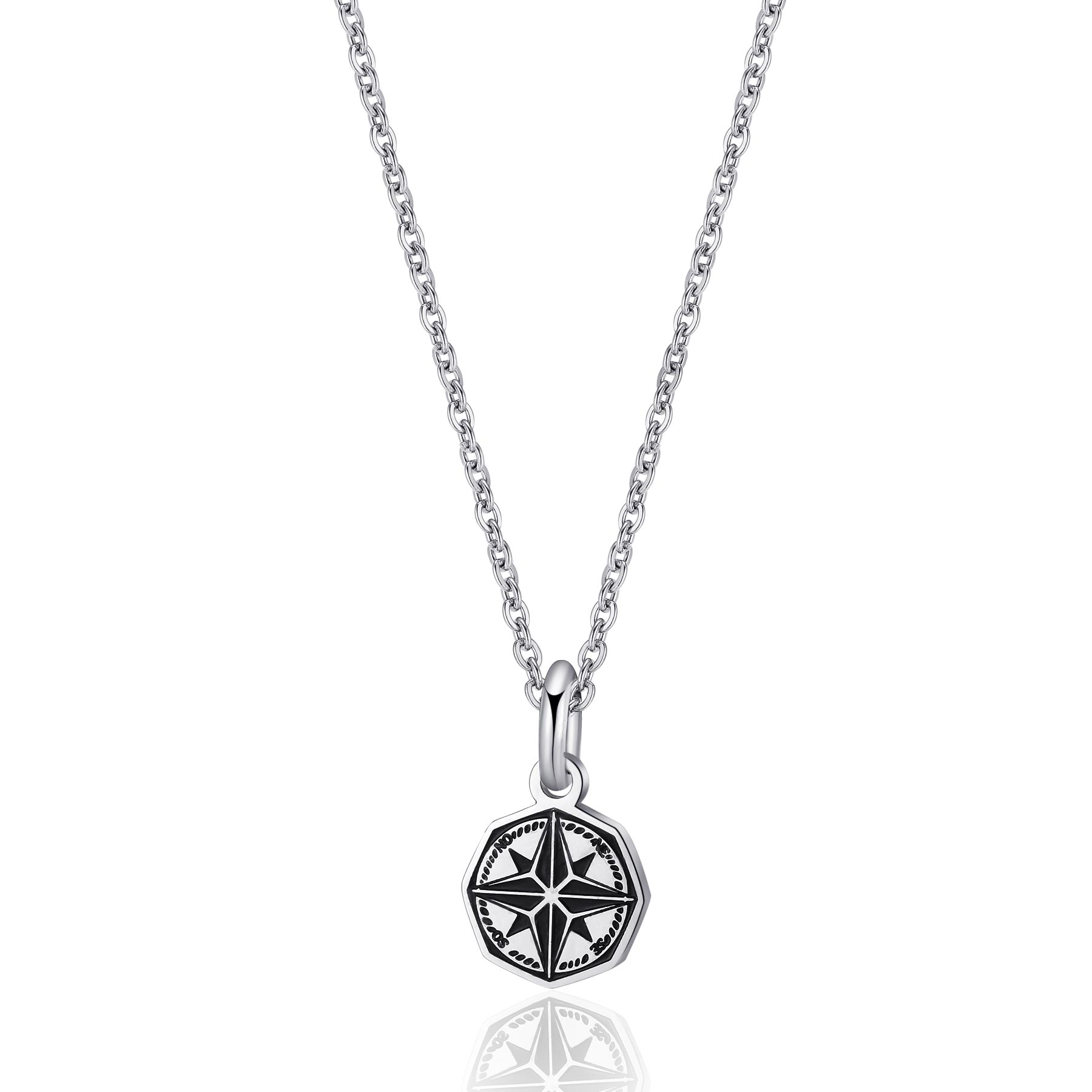 Collana girocollo in acciaio 316L con pendente con rosa dei venti e smalto nero.