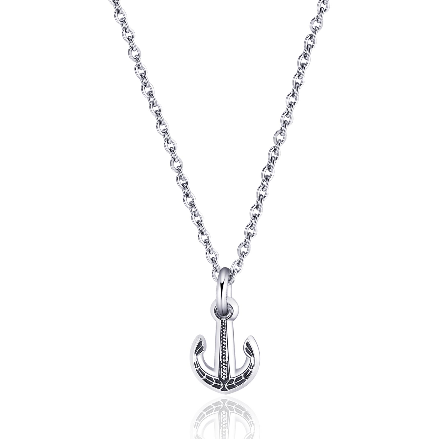 Collana girocollo in acciaio 316L con pendente a forma di ancora e smalto nero.
