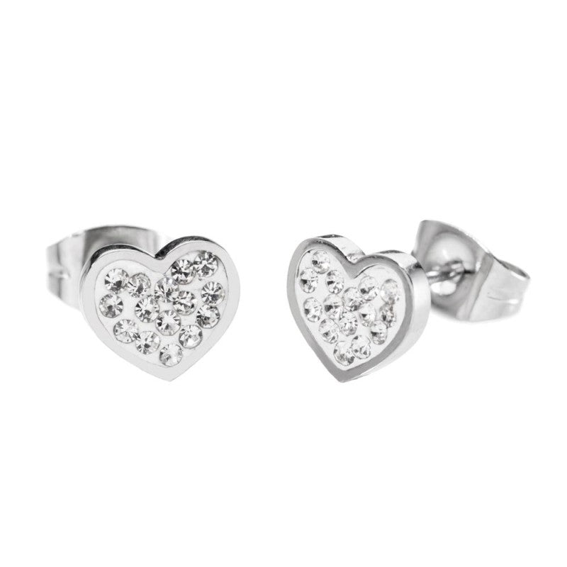 Orecchini in acciaio cuore con cristalli. Collezione: Time To Materiali: acciaio, cristalli