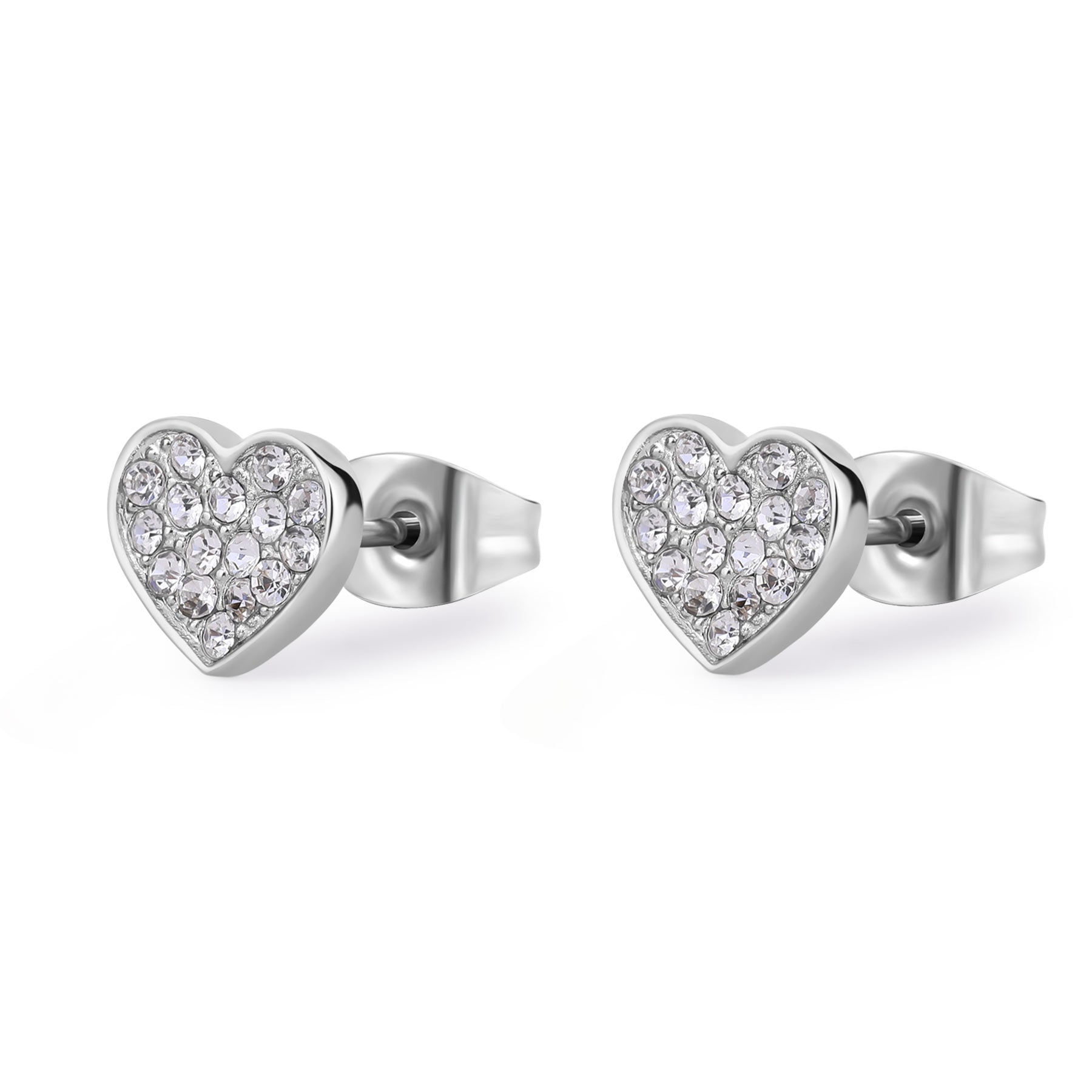 Orecchini a lobo in acciaio 316L a forma di cuore con cristalli.