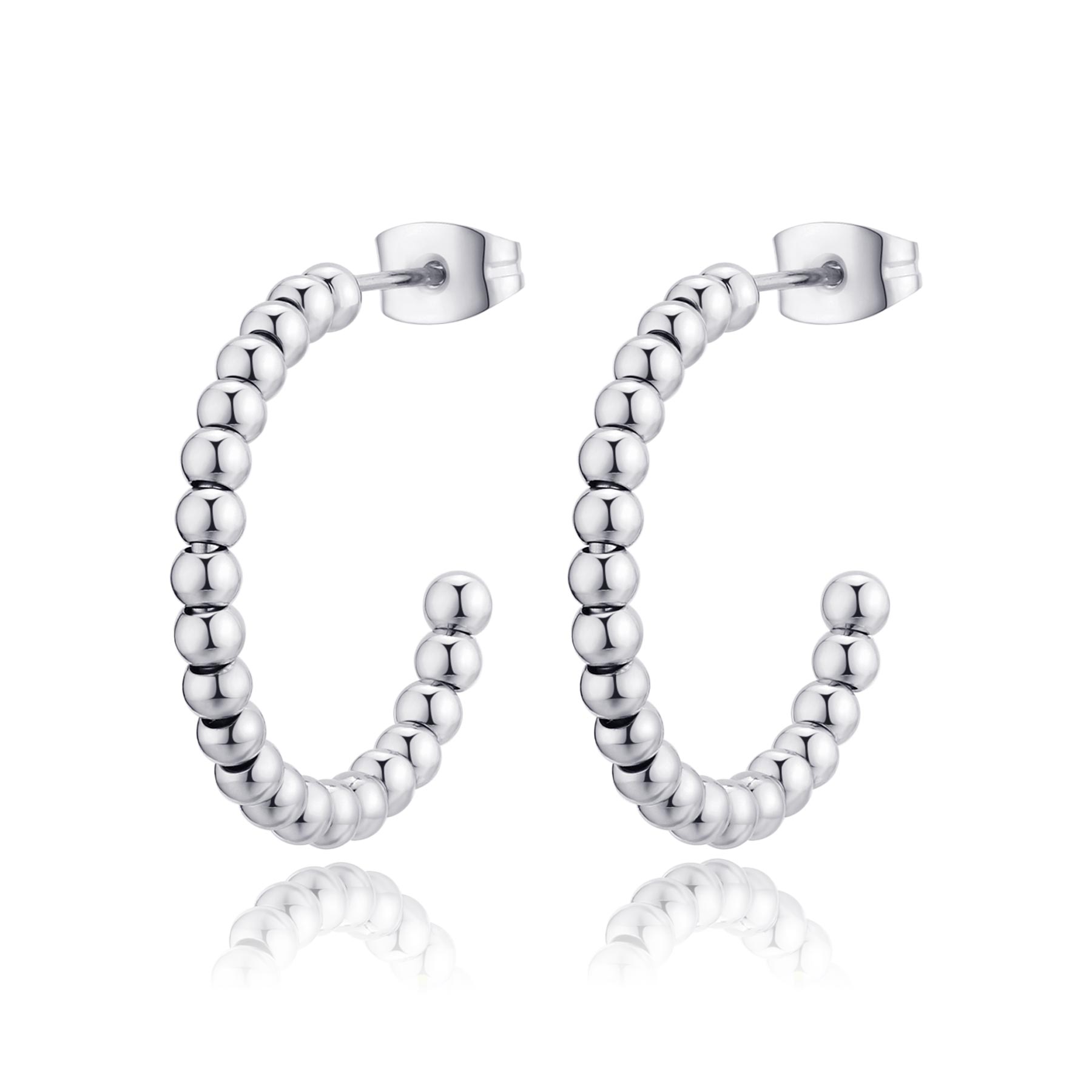 Orecchini a cerchio in acciaio 316L e sfere.