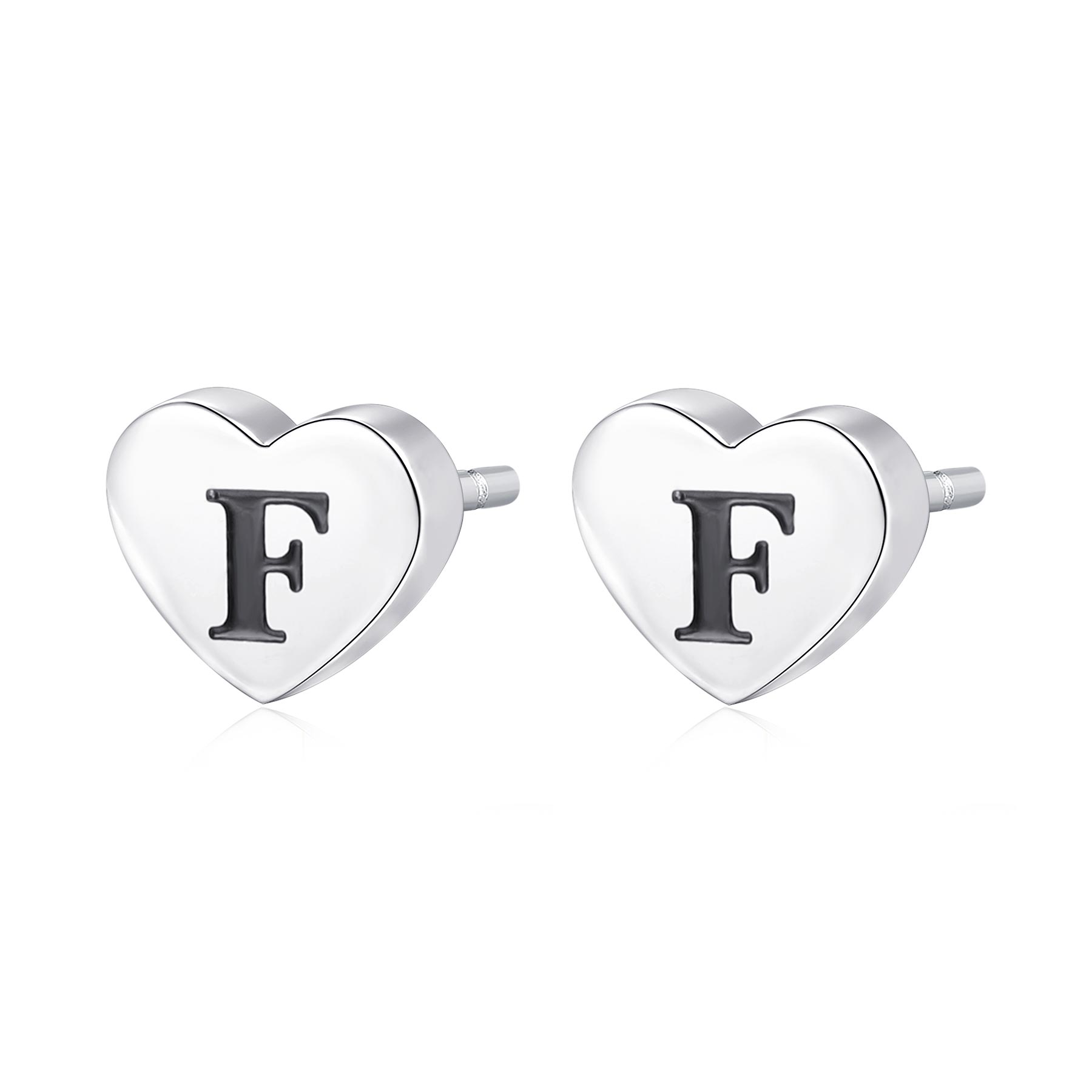 Orecchini a lobo a forma di cuore in acciaio 316L con lettera F e smalto nero.