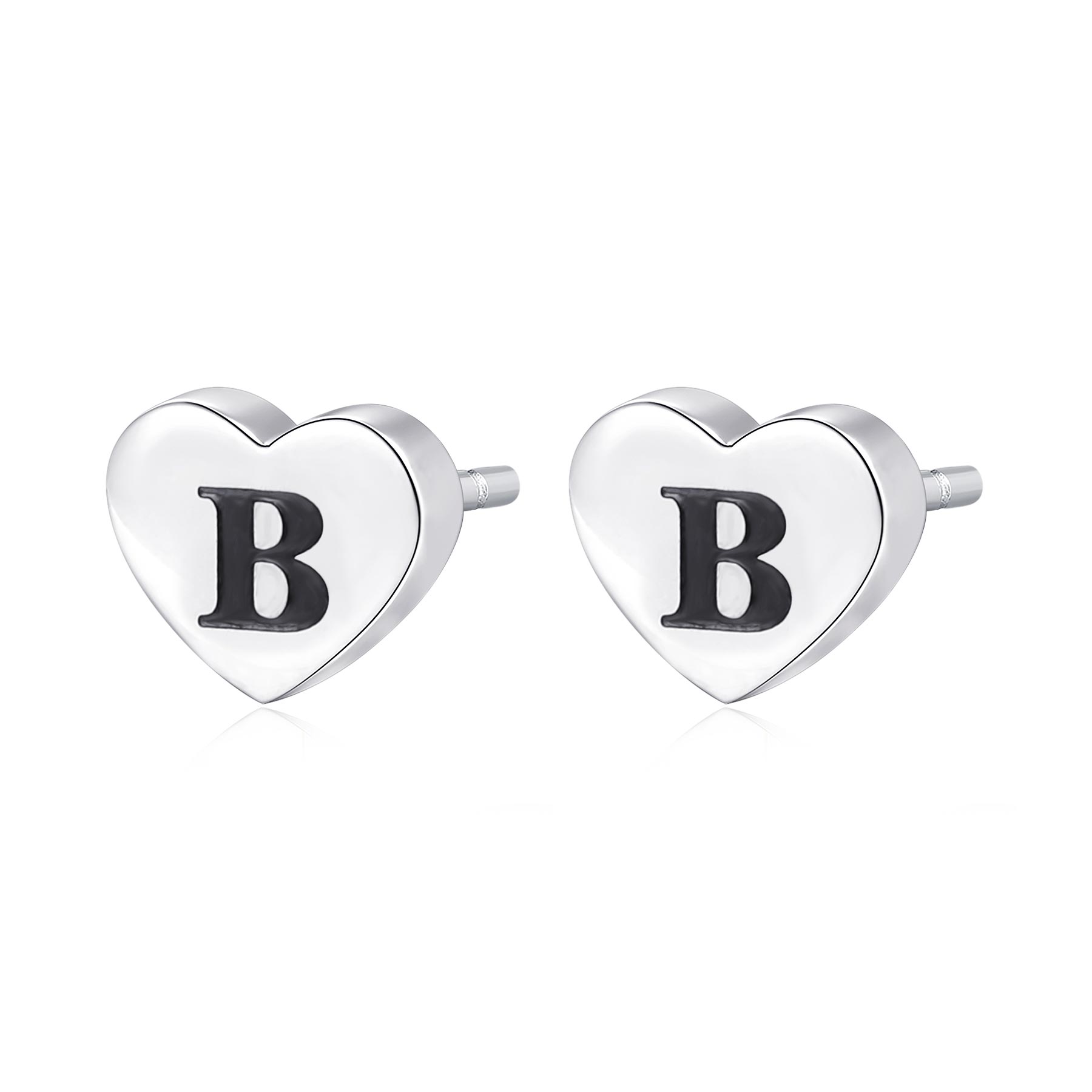 Orecchini a lobo a forma di cuore in acciaio 316L con lettera B e smalto nero.