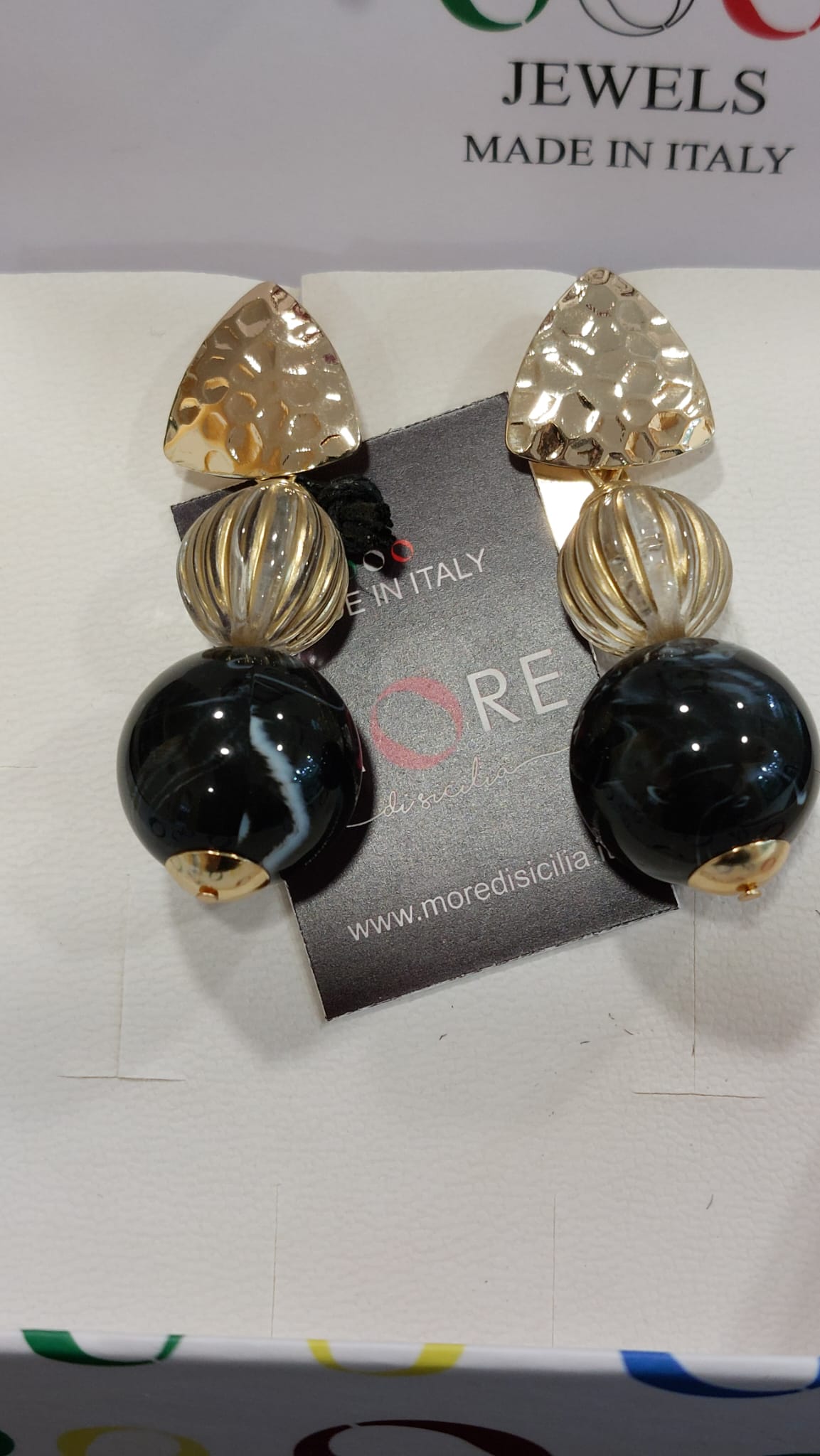 ORECCHINO PENDENTE CON SFERE IN RESINA NERE